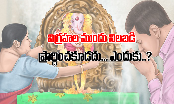 కానీ శాస్త్ర ప్రకారం ఈ విధంగా చేయటం చాలా తప్పు.దేవుని విగ్రహానికి నేరుగా నిల్చోకుండా ఎడమ వైపు గాని కుడి వైపు గాని నిల్చొని ప్రార్థించుకోవడం ద్వారా దేవానుగ్రహం లభిస్తుంది.