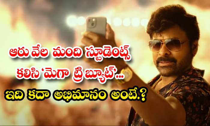 దాదాపు 6 వేల మంది స్టూడెంట్స్ కలిసి కాలేజ్ గ్రౌండ్ లో మెగాస్టార్ రూపం తీర్చిదిద్ది మెగా ట్రిబ్యూట్ అందించారు.ఈ మెగాస్టార్ పిక్ గెటప్ లో స్టూడెంట్స్ అంతా కూర్చుని అదరగొట్టారు.ఈ వీడియో నెట్టింట వైరల్ అవుతుంది.ఇది కదా మెగా ట్రిబ్యూట్ అంటూ ఫ్యాన్స్ సైతం ఆనందిస్తున్నారు.