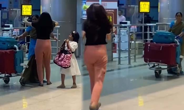 దీంతో ఆమె వస్తున్న విషయాన్ని గమనించి వీడియో తీయిస్తూ తన తల్లిని గట్టిగా పట్టుకొని సంతోషంలో మునిగింది.అయితే అదే సమయంలో తన తల్లి పక్కన ఒక పాప బరువైన బ్యాగును మోస్తూ కనిపించగా ఆ పాపను కనీసం పట్టించుకోకుండా ఉండటంతో వెంటనే ఫైర్ అవుతున్నారు.
