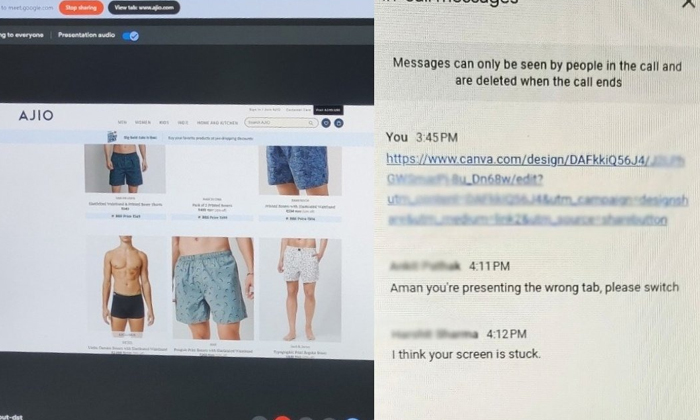 ఢిల్లీకి చెందిన అమన్ ( Aman) ఓ సాఫ్ట్వేర్ డెవలపర్.వర్క్ ఫ్రమ్ హోమ్ టైమ్లో అతగాడు బాక్సర్ల కోసం ఆన్లైన్ షాపింగ్ చేశాడు.ఇందు కోసం తన బ్రౌజర్లోని ఒక ట్యాబ్లో ఈ-కామర్స్ సైట్ను ఓపెన్ చేయడం జరిగింది.అయితే వర్చువల్ ఆఫీస్ మీటింగ్ సమయంలో తన స్క్రీన్ను షేర్ చేయమని అడిగినప్పుడు, అతను అనుకోకుండా షాపింగ్ పేజీకి సంబంధించిన ట్యాబ్ను షేర్ చేయడం జరిగింది.