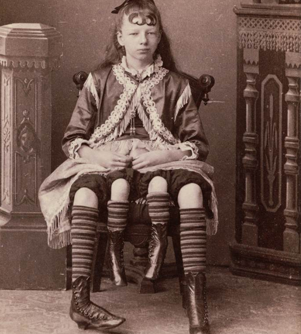 మొదట ఆమె కొన్ని రోజులు మాత్రమే బతికి ఉంటుందని వైధ్యులు భావించారు.నాలుగు కాళ్లు ఉన్నా కూడా రెండు కాళ్లు చాలా చిన్నగా ఉండటంతో పాటు, ఒక కాలు వంకర తిరిగి ఉన్న కారణంగా ఆమె ఒక్క కాలుపైనే నడిచే పరిస్థితి ఉండేది.నాలుగు కాళ్లలో మూడు కాళ్లు పని చేయకున్నా కూడా ఆమె ధైర్యంగా జీవితం సాగించింది.చిన్న వయసులోనే ఓ సర్కస్ కంపెనీలో చేరింది.అప్పట్లోనే వారానికి 450 డాలర్లను సంపాదించింది.