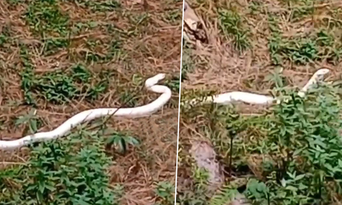 తాజాగా మధ్య హిమాచల్ ప్రదేశ్లో( Himachal Pradesh ) అరుదైన తెల్లటి రంగు ‘అల్బినో పాము’( Albino Snake ) కనిపించి స్థానికులకు కనువిందు చేసింది.దాంతో వారు తమ కెమెరాలలో దాన్ని బందించి ఆ తెల్లటి శ్వేతనాగు వీడియో ఆన్లైన్లో షేర్ చేసారు.