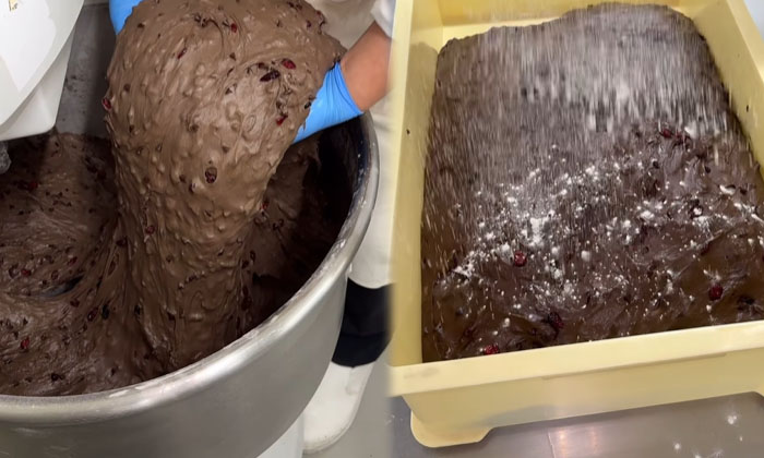 టోక్యో, ఒసాకాలో ( Tokyo, Osaka ) ఈ వీడియోలోని రొట్టె ముక్కను ‘ది బెస్ట్ చాక్లెట్ బ్రెడ్’ అని పిలుస్తారు.దీనిని తయారు చేసేటప్పుడు పిండిలో చాక్లెట్, క్రాన్బెర్రీస్, చాక్లెట్ చిప్స్ను కలుపుతారు.