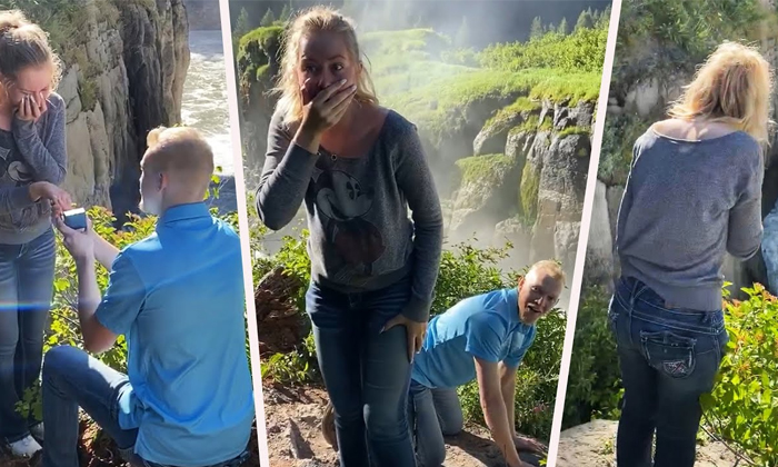 ఆ వ్యక్తి జలపాతం( Waterfall ) దగ్గర ప్రపోజ్ చేయడానికి రెడీ అవుతుండగా, అనుకోకుండా ఎంగేజ్మెంట్ రింగ్( Engagement Ring ) కింద పడేసినట్లు కనిపించింది.వెంటనే కెమెరా వెనుక నుంచి కేకలు మొదలయ్యాయి “నో వే పీటర్, వాట్ ద హెక్, ఎక్కడ పడింది అది?! నిజంగా పడిపోయిందా, ఓ మై గాడ్ అది పడిపోయింది.” అనేవి వారి కేకల సారాంశం.