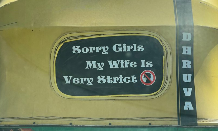 దాని వెనుక ఇలా రాసి ఉంది.“సారీ గర్ల్స్, నా భార్య చాలా స్ట్రిక్ట్” అని వ్రాయబడింది.